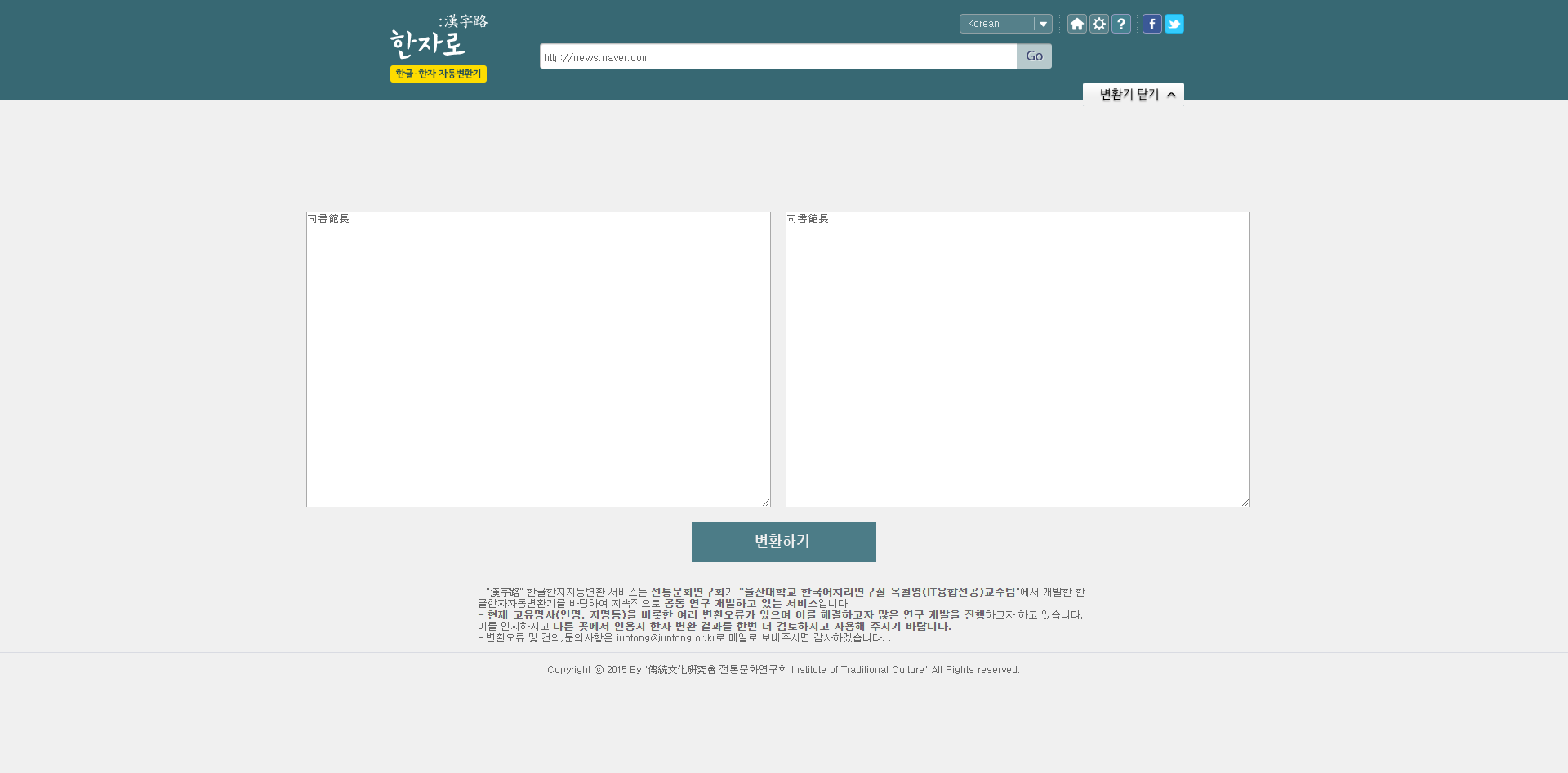 한글 한자 자동변환기 사이트 '한자로'