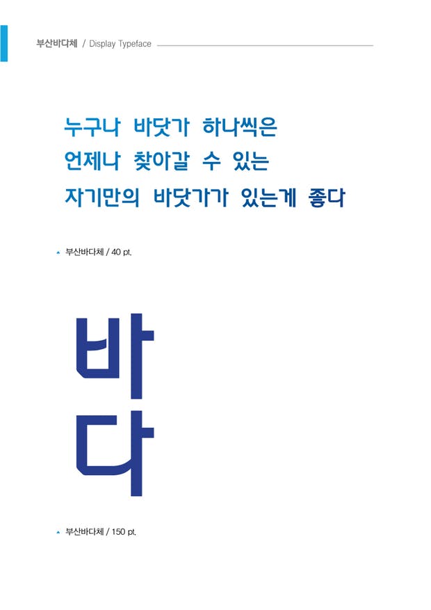 부산 바다체 라이선스 전문을 포함하기 어려울 경우, 본 글꼴의 출처는 반드시 표기하길 바랍니다.