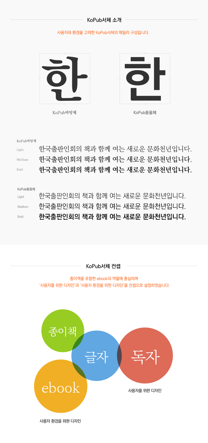 한글무료 상업폰트 중에서 사람들이 은근히 많이 쓰는 폰트가 있다. 그것은 바로 KoPub 폰트(코펍폰트라고도 많이 불린다.)가 있다. 쉽게, 코펍 폰트라고 얘기하면 될 것 같다. 한국출판인회의라는 곳에서 만든 폰트인데, 종이책에 최적화된 폰트라고 할 수 있다. 그 이유가, 이 협회 자체가 출판과 관련된 교육 및 사업을 진행하고 있기 때문이다. 여러가지 출판 유통환경을 개선하기도 하고, 출판 교육을 담당하거나, 여러 기타 사업들을 일궈내고 있는데, 이런 곳에서 정말 아름다운, 멋진 폰트를 만들어줬다.