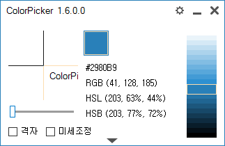 컬러피커라는 프로그램입니다. 말 그대로 색상추출 프로그램인데요. 위와 같은 프로그램들이 정말 많이 있지만, 개별색 및 농도음영표시를 간편하게 확인할 수 있는 소프트웨어 프로그램이라고 할 수 있겠습니다. 현재 ColorPicker 1.6.0.0 버전을 사용하실 수 있으며, 파일데이터가 간편해서 가볍게 사용하실 수 있는 프로그램입니다.
