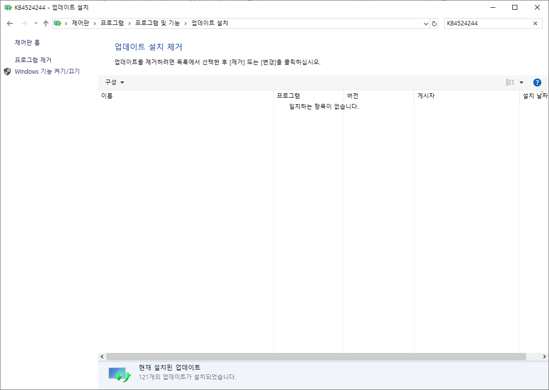 최근 윈도우 업데이트를 하면서 버그 및 오류가 발생하여 업데이트 된 설치파일 중에서 KB4524244 라는 보안 업데이트 파일이 있습니다. 심각한 오류를 초래하기 때문에 반드시 삭제해야하며, MS에서도 삭제를 권고하고 있습니다.