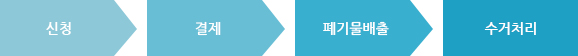 - 수거업체에 배출 사실 통보 후 쓰레기 배출장소에 내 놓으시면 24시간 이내에 수거처리 됩니다.(공동주택은 자체 지정일에 배출)