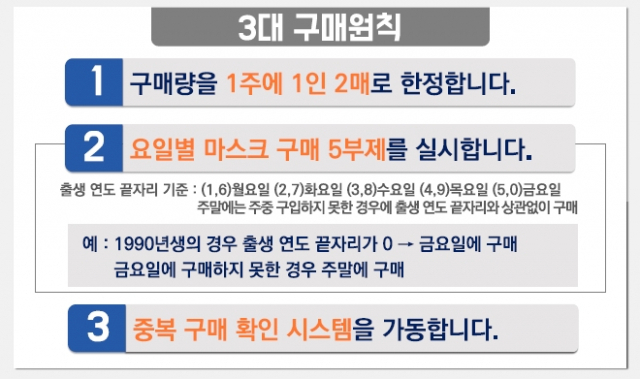 마스크 요일제(마스크 5부제)를 실시하게 됩니다. 출생연도 끝자리 기준으로 각 약국에서 구입이 가능하다고 합니다. 90년생, 91년생은 각각 금요일, 월요일에 구매가 가능할텐데요. 사람마다 상황이 다르고 직장인의 경우에는 평일에 약국 방문도 쉽지 않는 상황에서 주말에 이용하기를 원할텐데, 이러한 정책들이 모든 개인의 상황을 맞춰줄 수는 없죠. 마스크 대란은 마스크 사재기로 인한 마스크 품절상태가 지속됨에 따라 개인의 건강과 안전에도 위협을 가하는 중대한 사항입니다. 거의 매일 뉴스에서 보는 것 같아요.