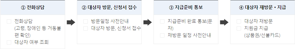 - 지급준비 완료 통보 후 지자체에서 재방문ㆍ지급(상품권, 선불카드)