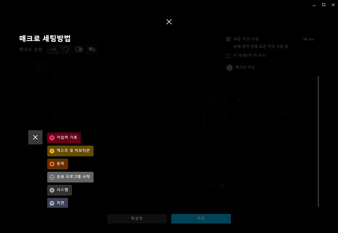 G HUB는 훨씬 세련되고 직관적인 부분이 많이 있는데, 이번 글에서는 G HUB 사용방법이 아니라 기본 세팅에서 명령/키/동작/매크로/시스템을 통해서 정말 다양한 기능들을 매크로 세팅을 할 수 있고, 그 중에서 매크로를 직접 입력하여 한 번의 클릭으로 내가 원하는 동작을 실행시킬 수 있는 매크로 기능에 중점을 둡니다.