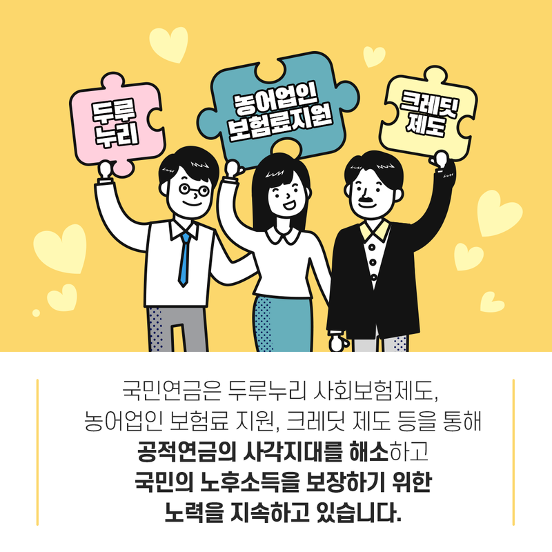 국민연금은 분명 장단점이 있습니다. 시중 은행을 다 찾아봐도 이렇게 수익성 좋은 보험상품은 없다고 이야기하는 사람들도 있고, 또한 물가상승률에 따라 수령금이 책정되기 때문에 그런 점에서도 굉장히 좋다고 생각합니다. 하지만, 이렇게 좋은 국민연금이 누군가에게는 부담으로 다가온다면 이는 잘못된 것이라고 생각합니다.