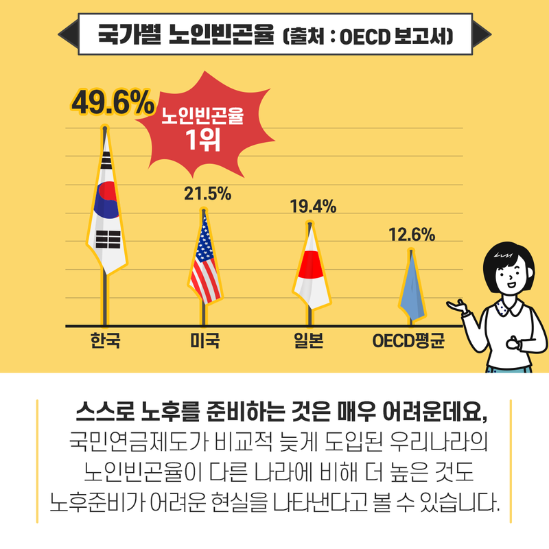 국민연금은 분명 장단점이 있습니다. 시중 은행을 다 찾아봐도 이렇게 수익성 좋은 보험상품은 없다고 이야기하는 사람들도 있고, 또한 물가상승률에 따라 수령금이 책정되기 때문에 그런 점에서도 굉장히 좋다고 생각합니다. 하지만, 이렇게 좋은 국민연금이 누군가에게는 부담으로 다가온다면 이는 잘못된 것이라고 생각합니다.