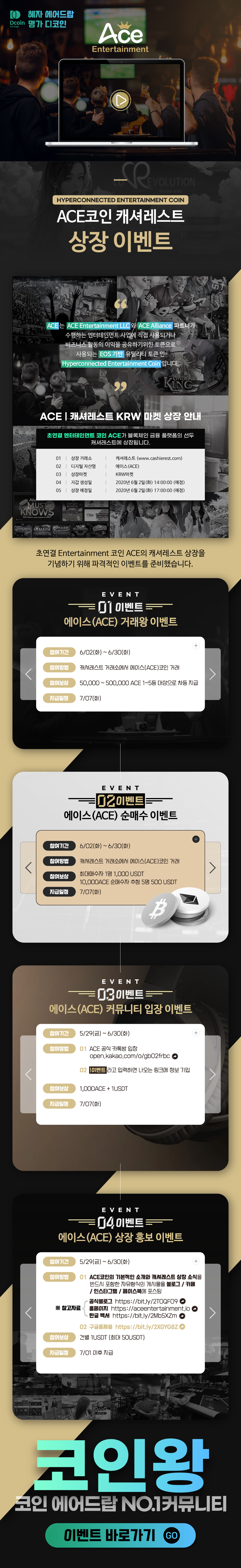 ACE코인 캐셔레스트 상장 이벤트