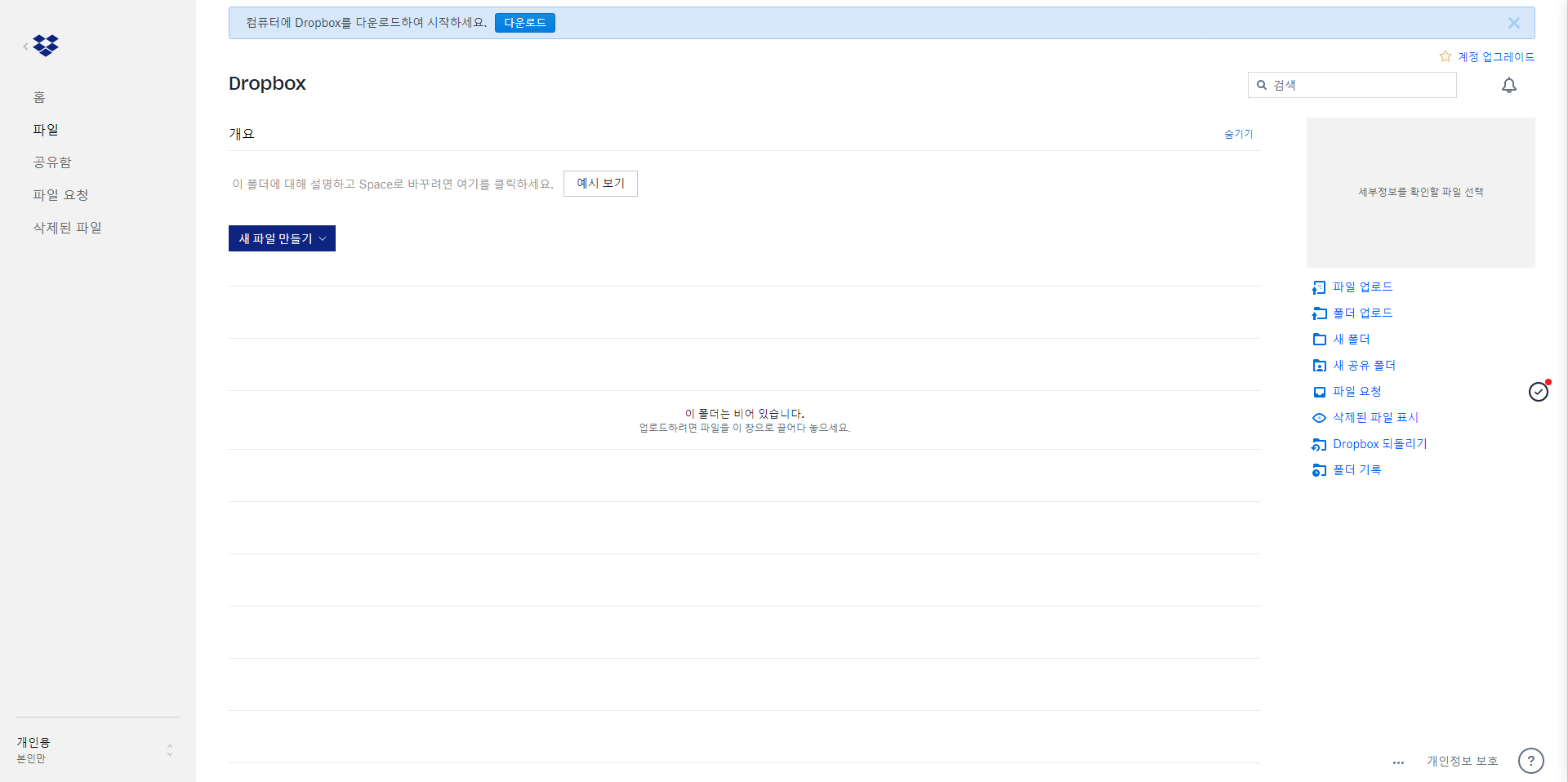 이렇게 윈도우 환경에서 쉽게 드래그 앤 드롭으로 파일을 업로드하거나 다운로드할 수 있습니다. 이렇게 되면 파일을 쉽게 정리할 수 있고 외부 환경에서도 드롭박스 사이트를 통해서 파일을 다운로드할 수 있을 겁니다.