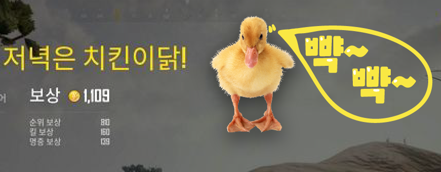 저녁은 치킨이 되어버린 병아리 이미지다. 간단하게 물방을 브러쉬로 긁어주기만 해도 간단하지만, 재밌는 이미지를 만들어낼 수 있다.