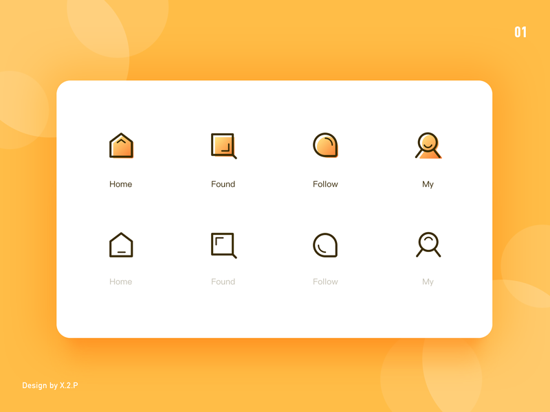 비핸스에서 본 탭바 일러스트 및 아이콘 요소가 포함되어 있는 디자인, 그라에디션 컬러로 부드럽게 적용된 파스텔 톤은 세련된 스타일을 느끼게 한다. 배경 요소는 원형의 오버레이 효과가 여러 레이어로 적용이 되어 있다.
