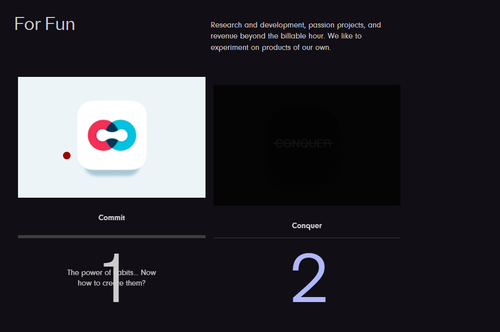 마우스 커서에 동적 애니메이션 효과를 넣었으며, 각 요소에 호버가 되었을 때, 다양한 디자인으로 변형됩니다. 브랜딩 또는 마케팅 사이트 등의 웹사이트를 제작하는 디자인 스튜디오입니다.