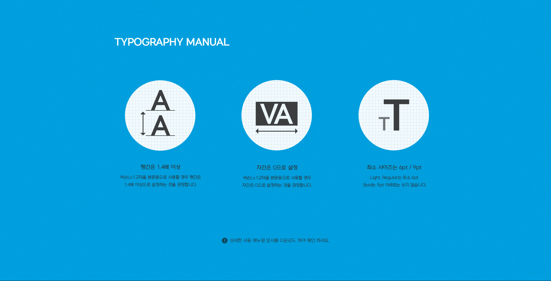 횡간의 경우에는 가독성을 위해서는 기본값인 1.8을 권고하지만, 1.4 이상부터는 깔끔하게 표현이 되고 있습니다. 나눔스퀘어 폰트와는 달리 작은 글씨에도 선명하게 표현되는 장점이 있습니다.
