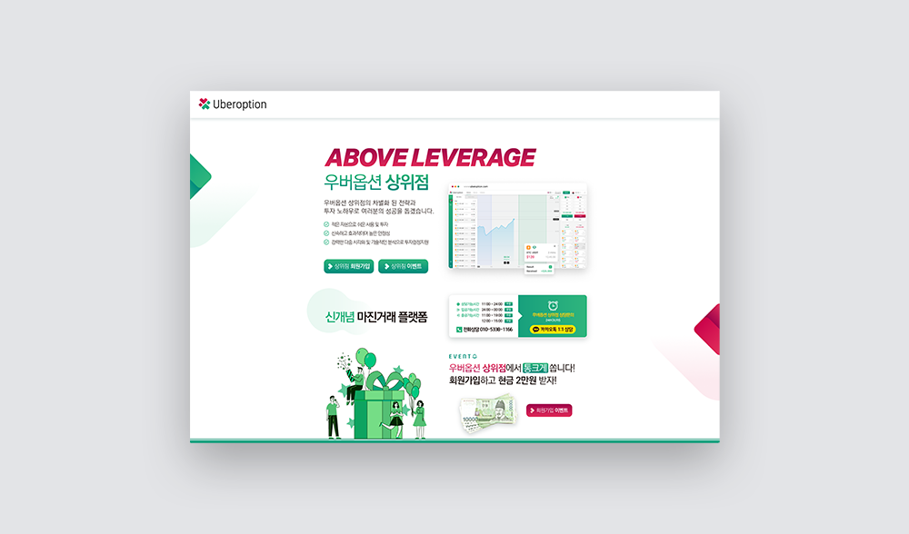 첫 메인에서 보여지는 이미지와 더불어, 상담 안내 기능을 하는 중간 배너 형식, 그리고 회원가입 이벤트 등의 요소들을 매력적으로 보이기 위해 디자인 요소들을 추가하였습니다.