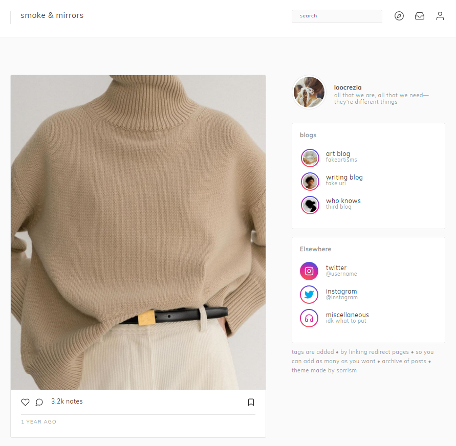 - optional box for sideblogs or recommended blogs, idk you can be creative