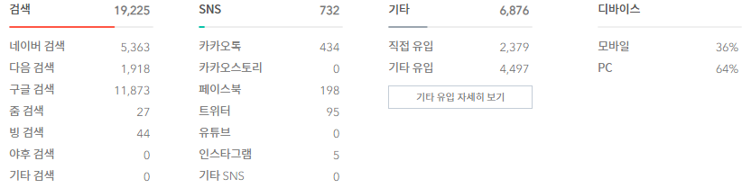 웹사이트 영역인 구글과 네이버 웹사이트 부분과는 다르게 다음에서는 티스토리를 블로그로 인식하고 있습니다. 따라서 SEO 최적화를 했다고 하더라도 다음에서의 방문유입은 다른 검색포털과는 다를 수 있습니다.
