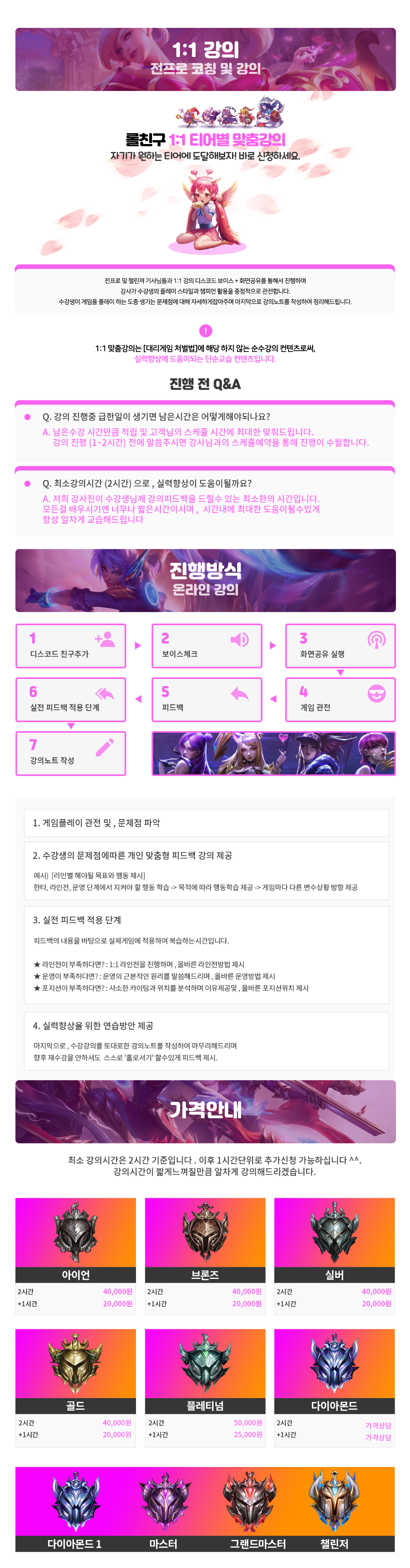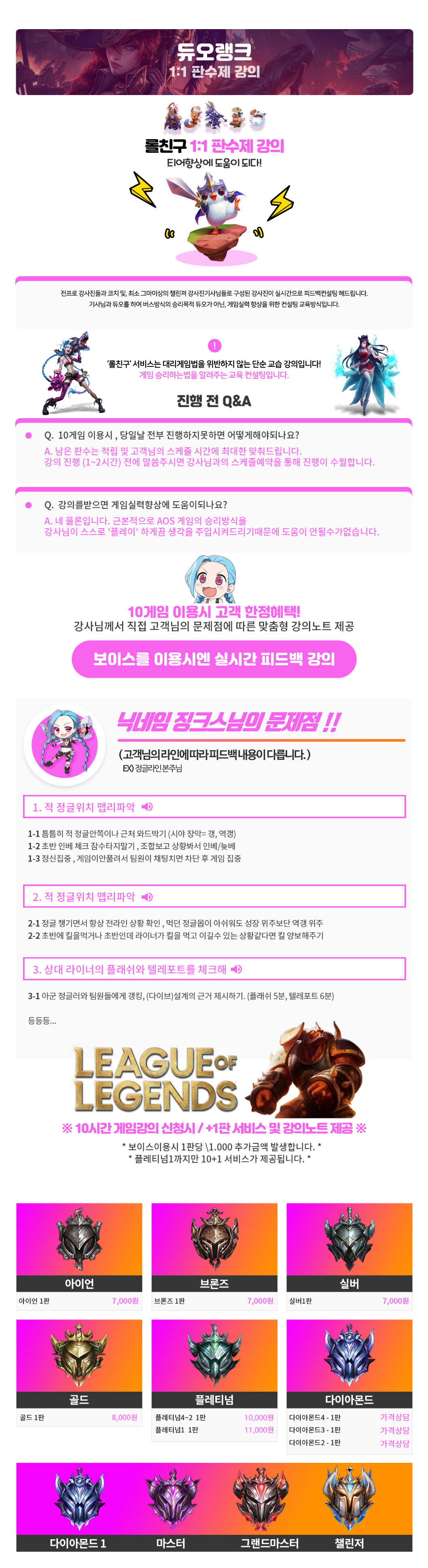롤 친구 관련 상세페이지 및 소셜 프로필 또는 디자인 수정 작업 포트폴리오입니다.
