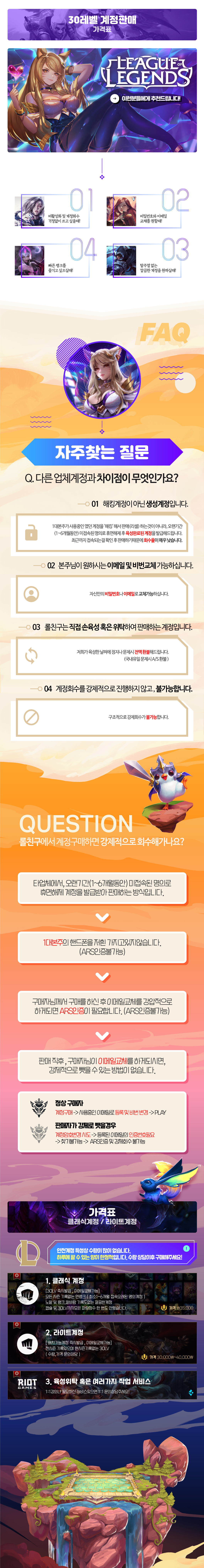 기존에 심플하게만 구성되어 있던 기존 이미지에 리디자인 작업을 했습니다. 분명하게 구분되었던 각 면들을 조금 거친 이미지의 텍스쳐로 구성하였으며, 상단 메인에 롤 로고 이미지와 더불어 롤 관련 캐릭터 누끼 이미지를 삽입하여 꾸며낸 이미지입니다. 훨씬 다채롭고 개성 있는 상세페이지 이미지를 의도하였습니다.