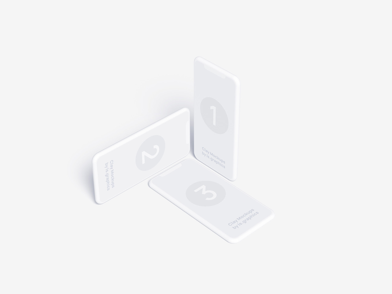 입체적인 형태의 아이폰 목업이며, 세 개의 아이폰 목업이 다양한 각도로 거치가 되어 있는 형태의 목업 파일이다. 무료로 다운로드 받을 수 있으며, 색상을 변환시킬 수 있는 아이폰 목업 파일이다.
