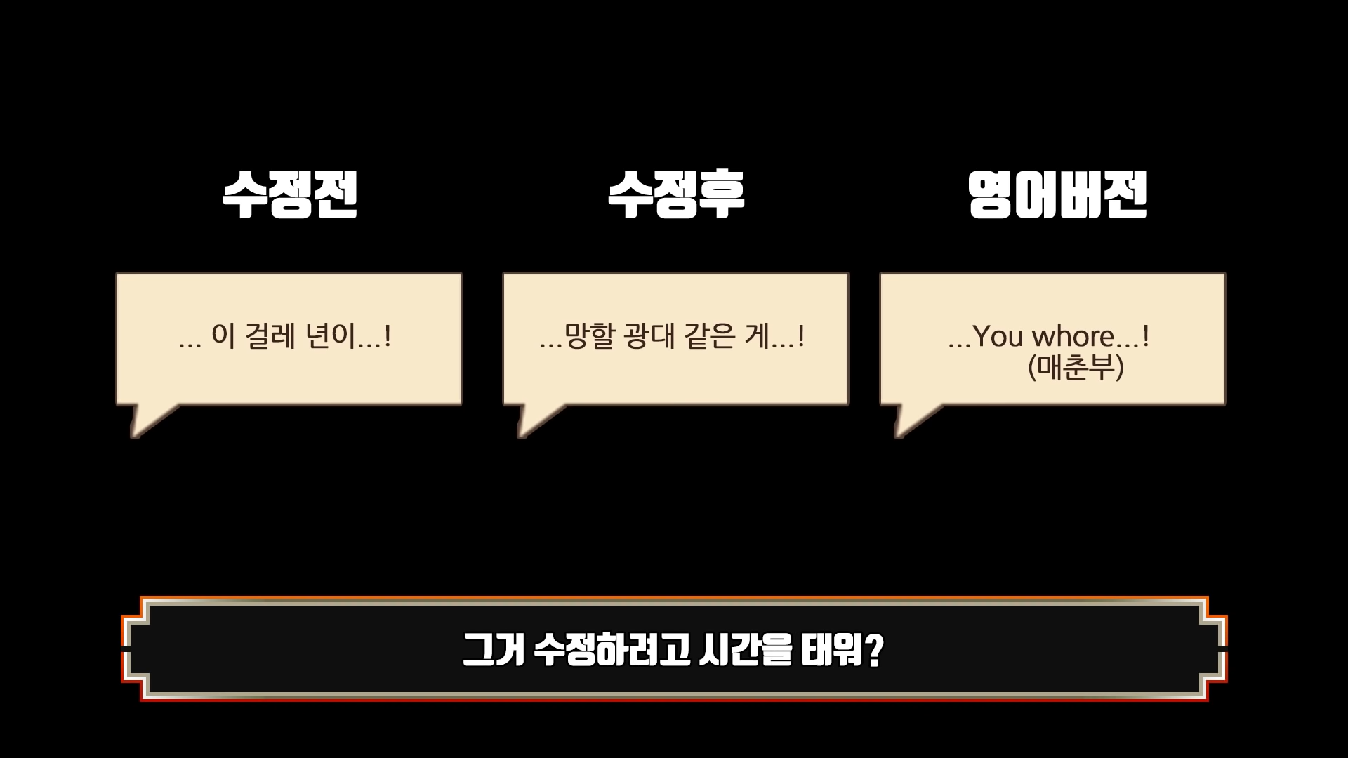 - 버그나 각종 불법프로그램 픽스도 안하면서 게임 대사 수정