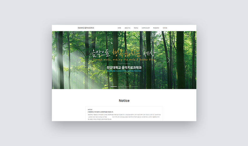 | 프로젝트 | 한양대학교 음악치료과학과 공식블로그입니다. 한양대학교 음악치료과학과는 음악의 치유적 기능을 핵심으로 뇌과학, 인공지능과의 초융합 접근을 통하여 health, wellbeing & learning 등 미래사회 인간번영(Human-Flourishing)을 위한 선도 연구를 수행합니다. 티스토리 플랫폼으로 제작하였으며, 상단 메뉴 구성과 메인 섹션, 카테고리 구성, 푸터 부분, 슬라이드 섹션, 반응형 미디어 쿼리 등을 퍼블리싱하였습니다. |
