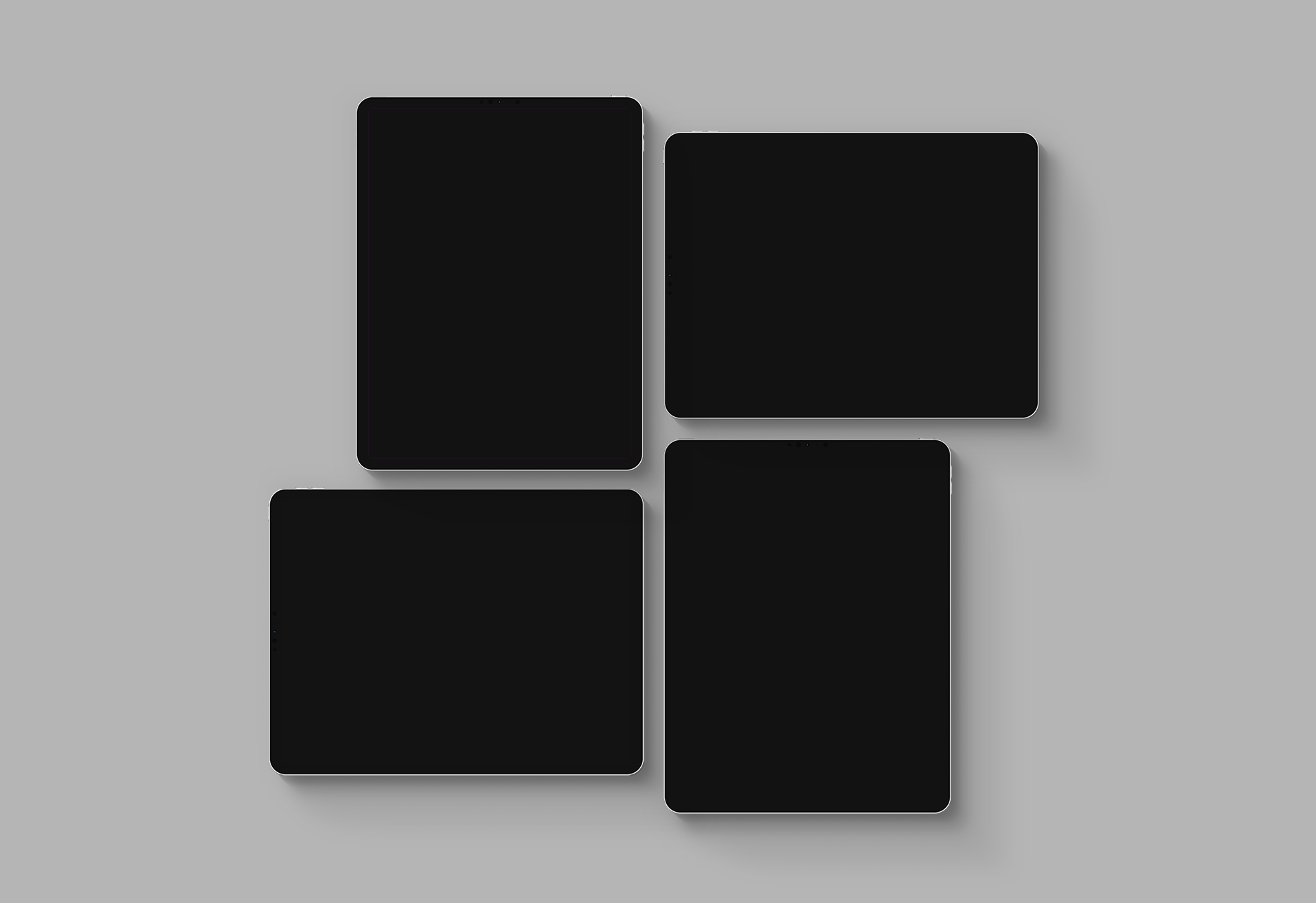 기본 목업 파일에 최소한으로 경량화한 가벼운 목업파일입니다. Composition(구성)이라는 파일이름으로 되어 있는 만큼, 아이패드 4개의 구성으로 되어 있습니다. 각각의 아이패드 요소를 적절하게 위치를 변경하여 사용하여도 좋습니다.