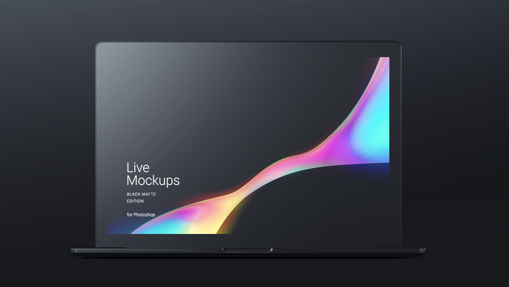 블랙 매트 에디션의 맥북 목업 경량화 버전입니다. 이미지의 최대 사이즈는 가로 사이즈 기준 1000px까지 줄였습니다. 가볍게 쓸수 있는 맥북 목업파일입니다. 전면의 대체 이미지를 변경하여 사용할 수 있습니다.