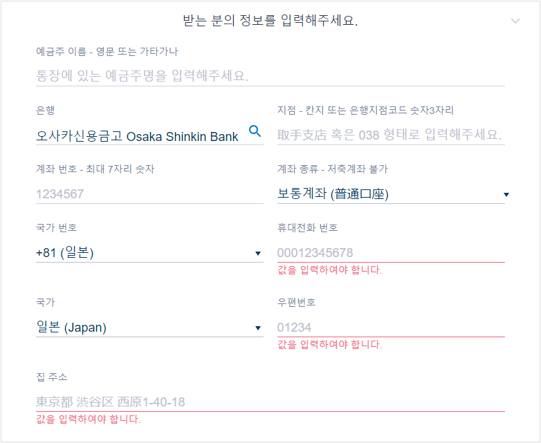회원정보에 개인정보(이름·휴대전화·국가·우편번호·집주소·상세주소)를 입력해둔 다음 송금하기를 클릭하고 금액을 작성한 뒤에 송금을 하면 된다. 수수료의 경우에는 매우 저렴한 금액으로 송금을 할 수 있는데, 그 이유는 일반 은행에서는 송금 수수료와 전신료, 중계, 수취 수수료가 발생한다. 매번 은행에 가는 것도 다소 귀찮을 수 있다.
