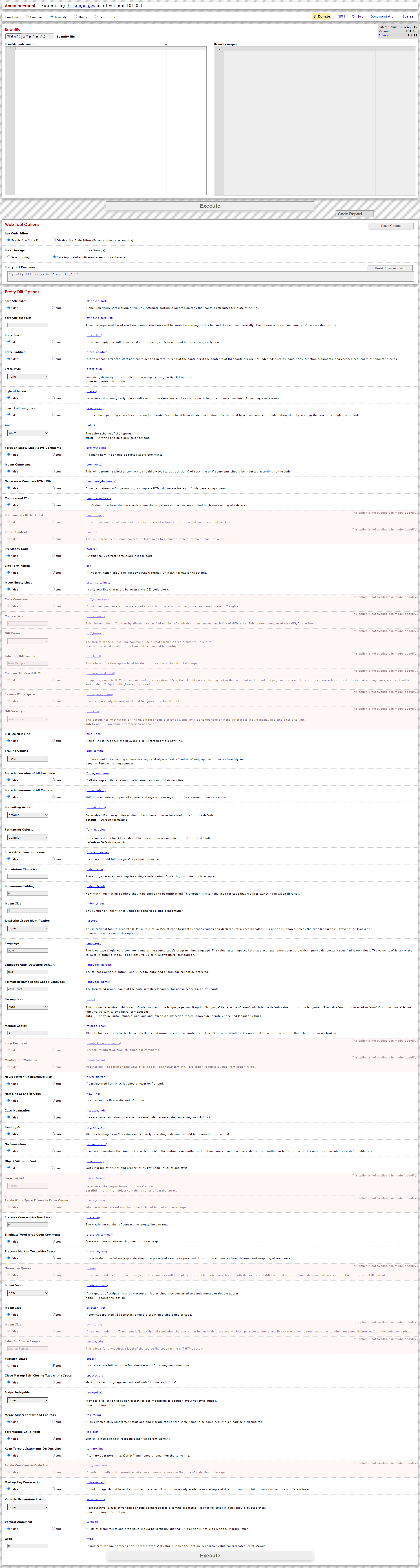 왼쪽 하면에 정리하고자 하는 코드를 넣고 Execute를 누르면 정리된다. 사이트 웹코드 정리를 자주하는 사람들에게 정말 권장하는 사이트라고 할 수 있다.