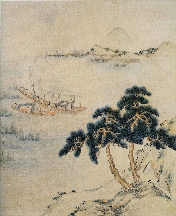 '송호거사진적첩(松壺居士眞跡帖)'이란 화첩에 실려있는 8면의 산수화 가운데 7면이다. 전두(錢杜) 특유의 은은한 설채법이 잘 나타나 있는 작품이다.