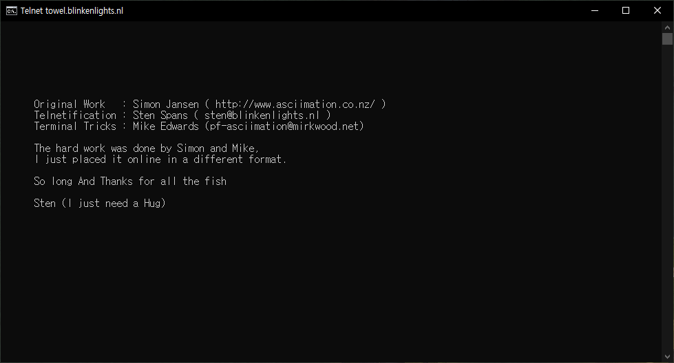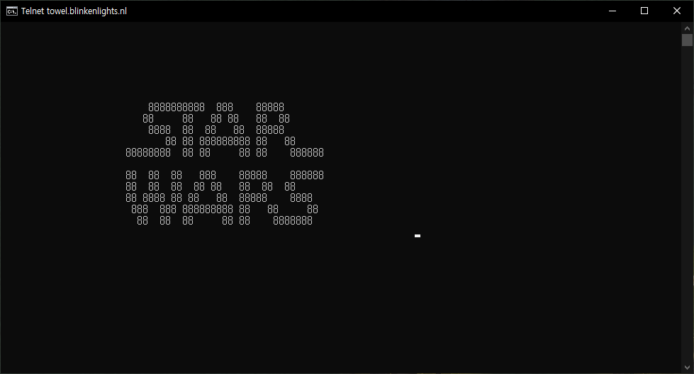 한글로 텔넷 클라이언트 또는 Telnet Client라는 항목을 찾아 클릭해서 활성화하고 난 뒤, 도스창에서 towel.blinkenlights.nl 라는 명령어를 작성해보자. 어떤 일이 벌어질까?