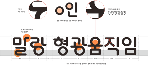 동근 획과 꺾임의 형태를 굴림으로 표현하여 전체적으로 부드럽고, 말랑말랑한 인상을 표현했습니다.