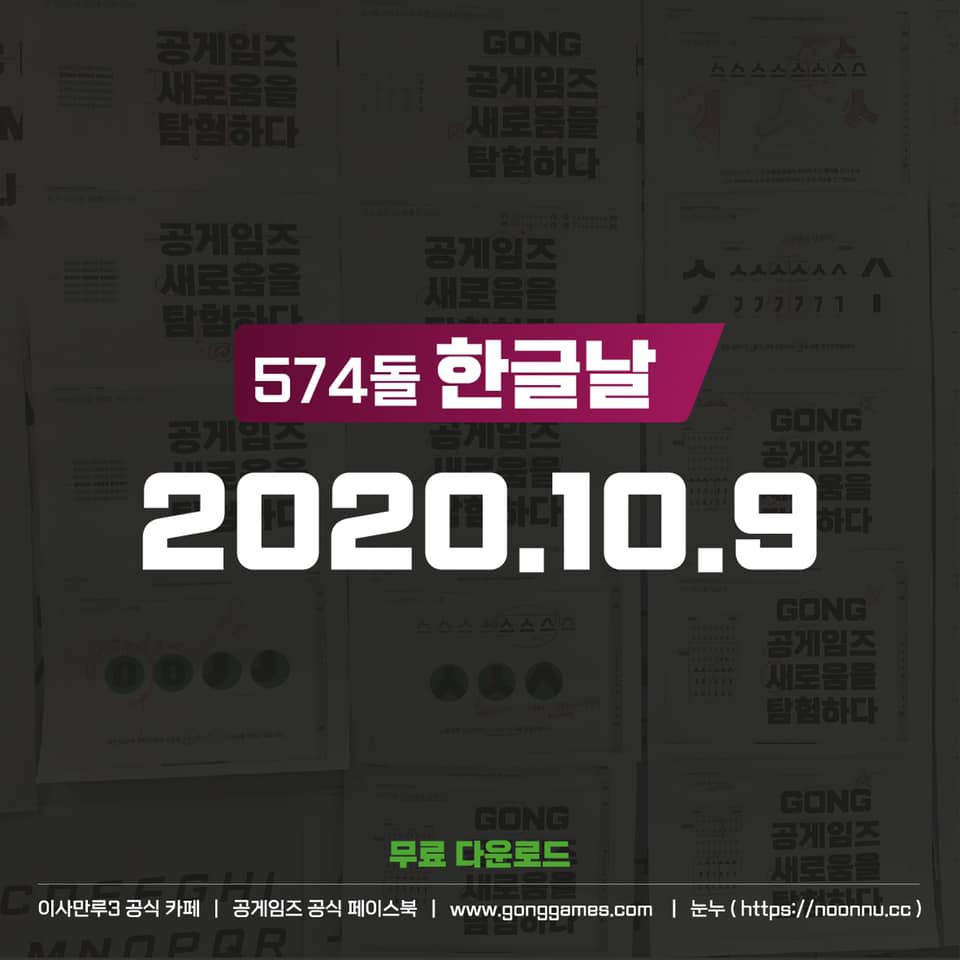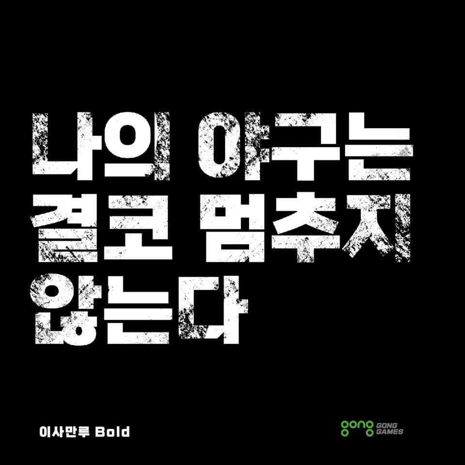 2020년 한글날을 맞이하여, 공게임즈와 폰트릭스가 손을 잡고 개발한 공게임즈 전용 폰트 '이사만루체'를 소개합니다. 공게임즈 로고와의 연결성과 활용성에 집중해서 개발하였습니다.