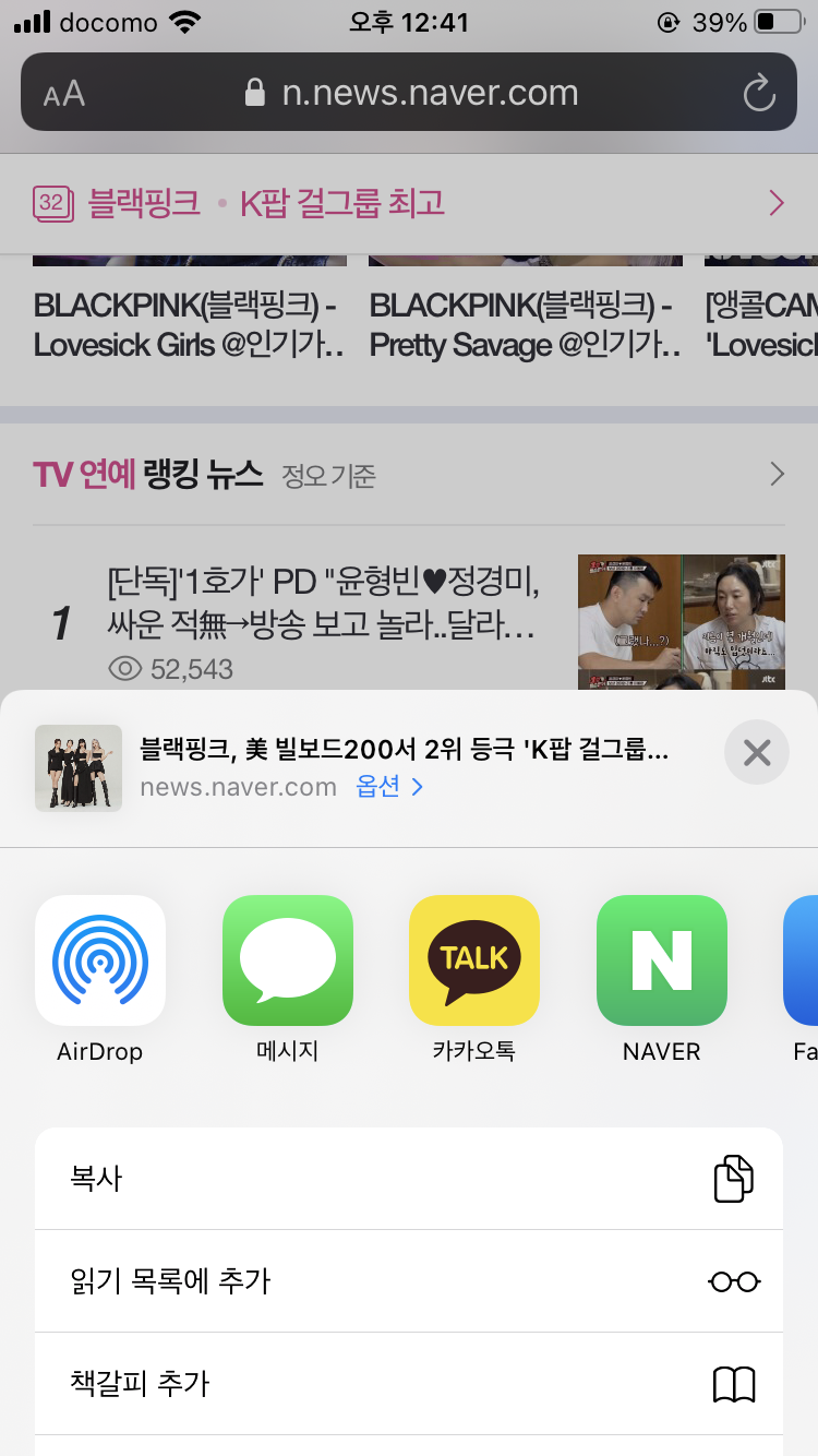 이번에는 아이폰으로 PDF를 따는 방법에 대해서 설명해드리겠습니다. 아이폰에서는 여러 모바일 브라우저를 사용할 수 있는데, 기본 브라우저인 사파리 기준으로 모바일 화면을 PDF로 저장하는 방법입니다. 일단 캡쳐하고자 하는 화면을 킨 다음에 아이폰 하단에 있는 공유 버튼을 클릭합니다.