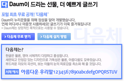 다음의 초기화면과 다음 주요 서비스 타이틀에 적용되면서 많은 사람들에게 알려진 서체입니다.