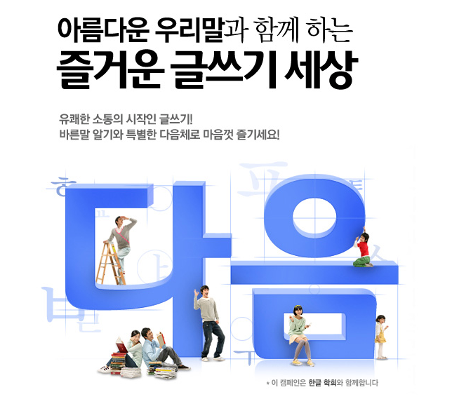 국내 포털 최로로 만든 글꼴, 다음(Daum)체. 브랜드 가치를 담은 고유서체로 한때 무료배포를 했던 글꼴이다. 다음의 브랜드가치를 담아 새롭고 세련된 톤에 기존 다음의 친근한 느낌을 더한다는 컨셉으로 다음 커뮤니케이션의 고유 서체인 다음체를 제작하고 배포했다.