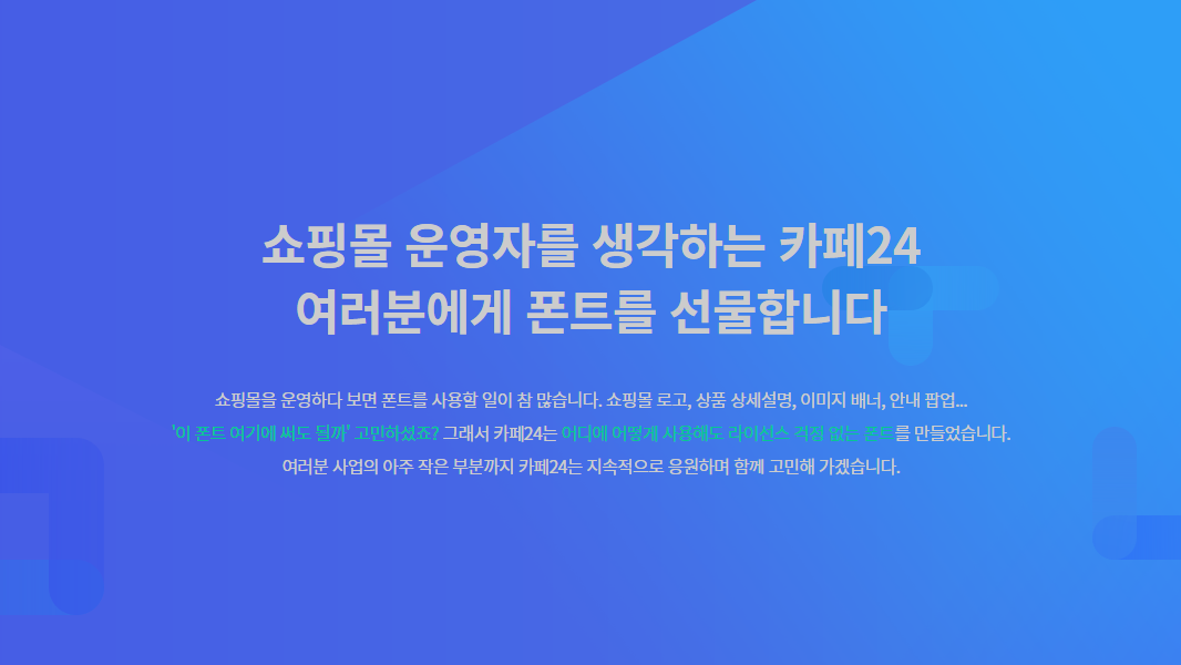 - 카페24 폰트를 사용한 결과물은 카페24의 프로모션을 위해 활용될 수 있습니다.