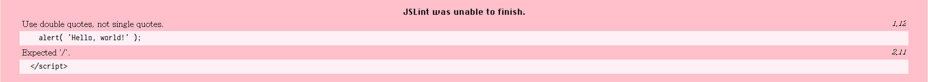 JSLint(www.jslint.com)에서 자바스크립트 코드에 문제점이 있는지 검사할 수 있습니다.
