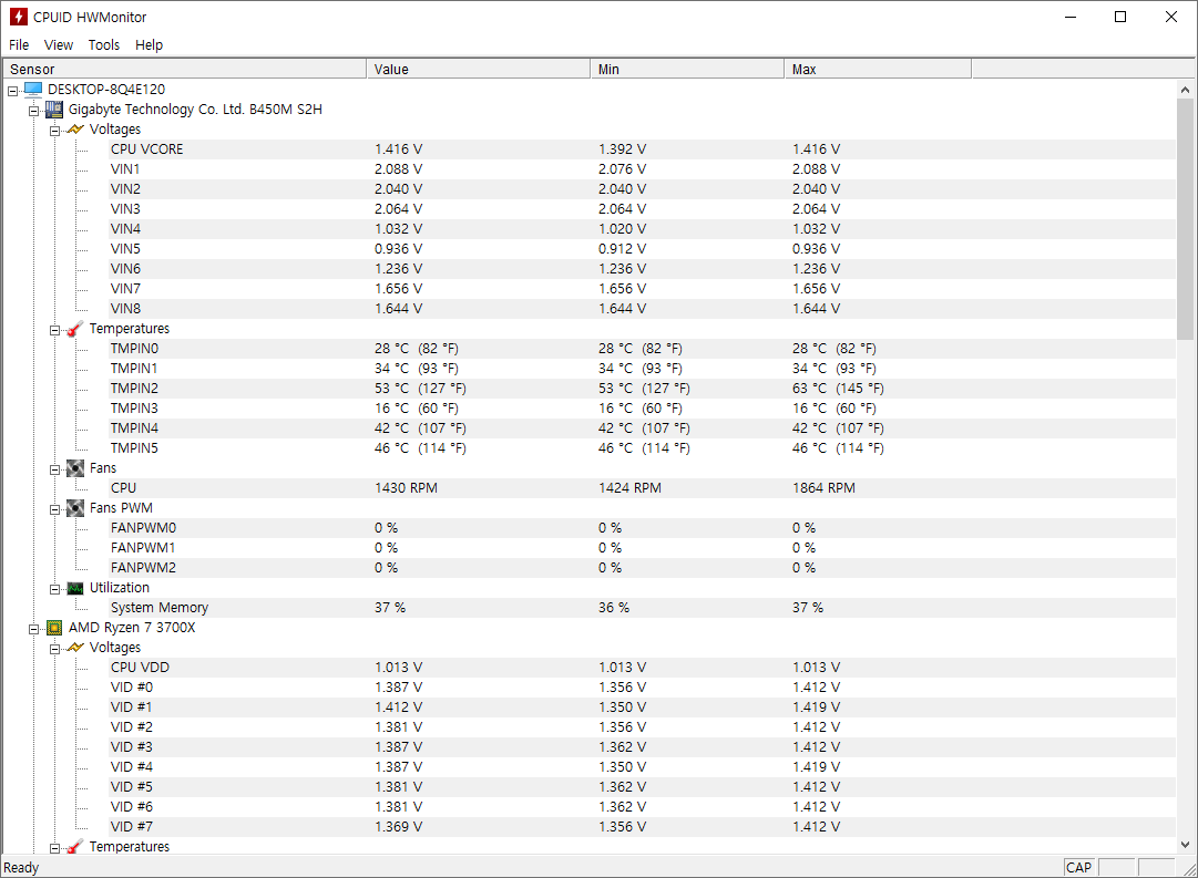 HWMonitor is a hardware monitoring program that reads PC systems main health sensors : voltages, temperatures, fans speed.