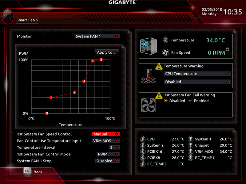 - Manual : 팬 속도를 곡선 그래프에서 제어할 수 있다.