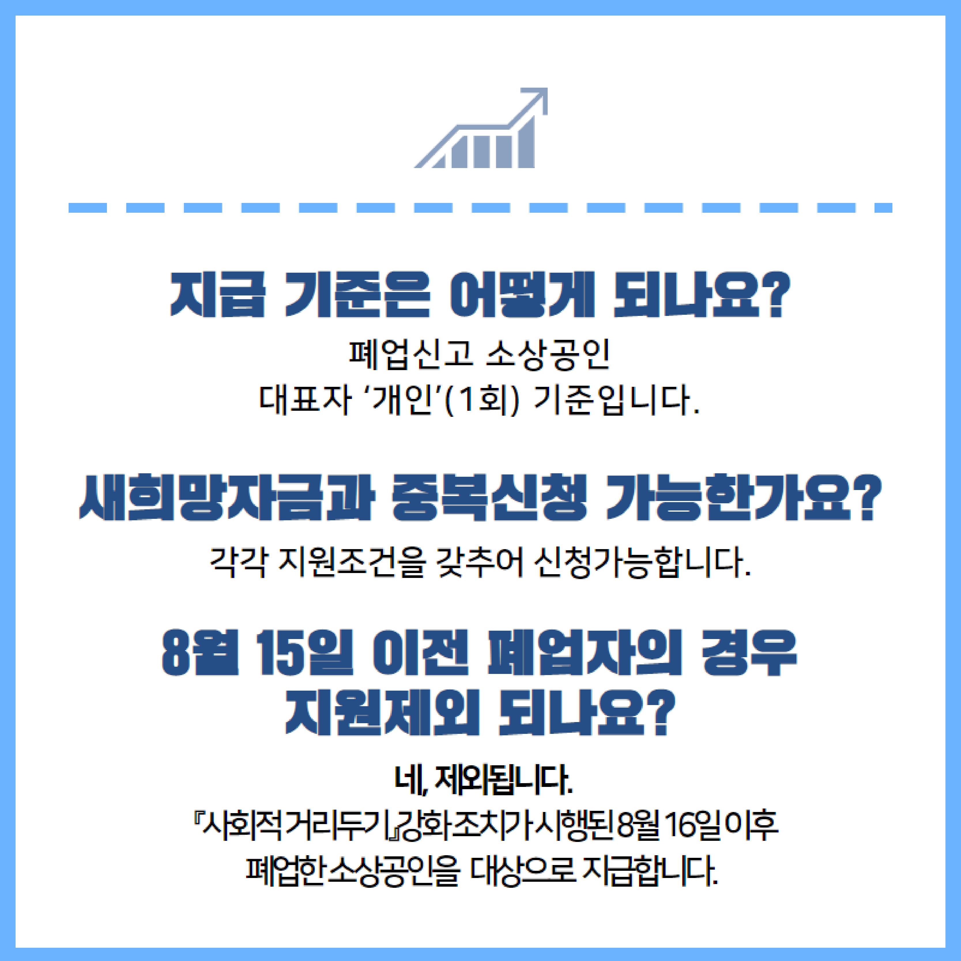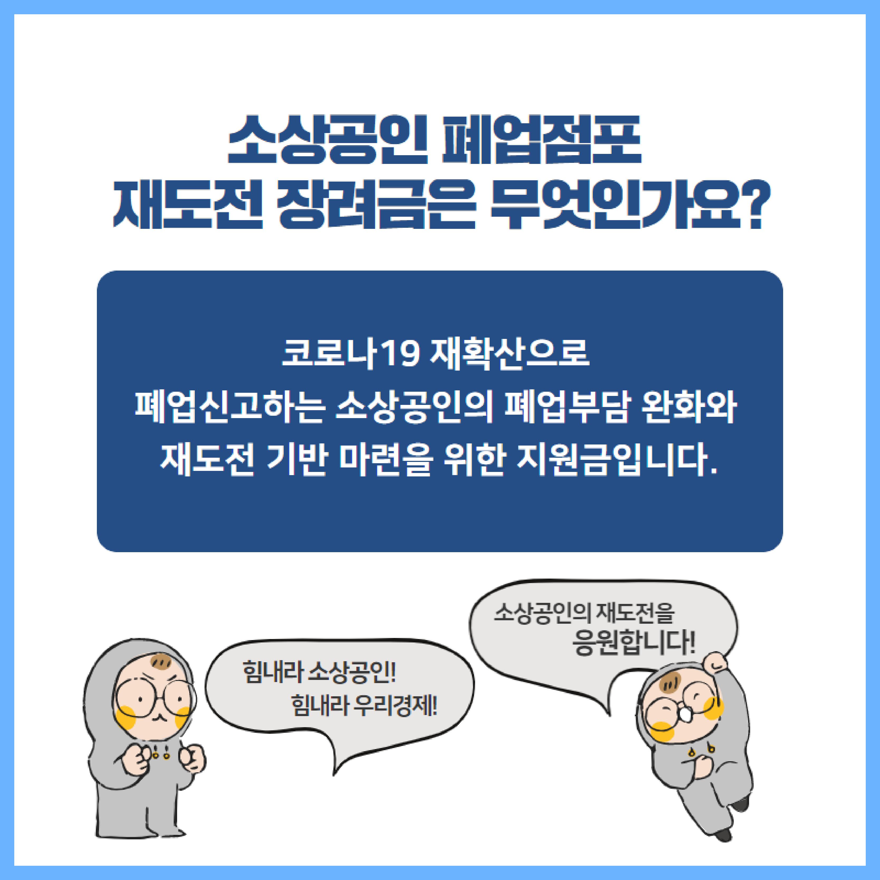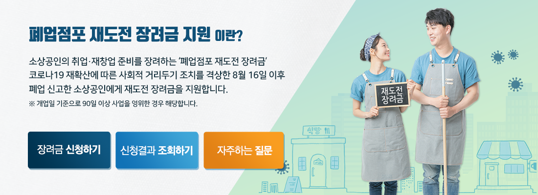 코로나 19 재확산에 따른 사회적 거리두기 조치 이후 8월 16일 폐업 신고한 소상공인을 대상으로 50만 원의 장려금을 주는 제도입니다.