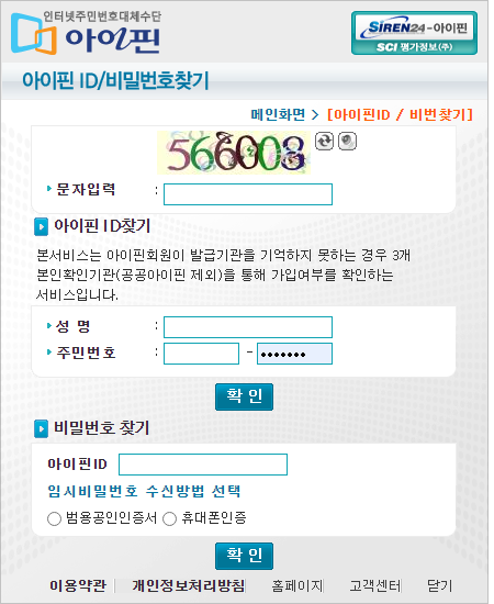 아이핀 발급 및 사용