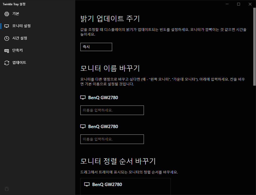 - 모니터 이름 바꾸기(칸을 비우면 기본 이름으로 설정)