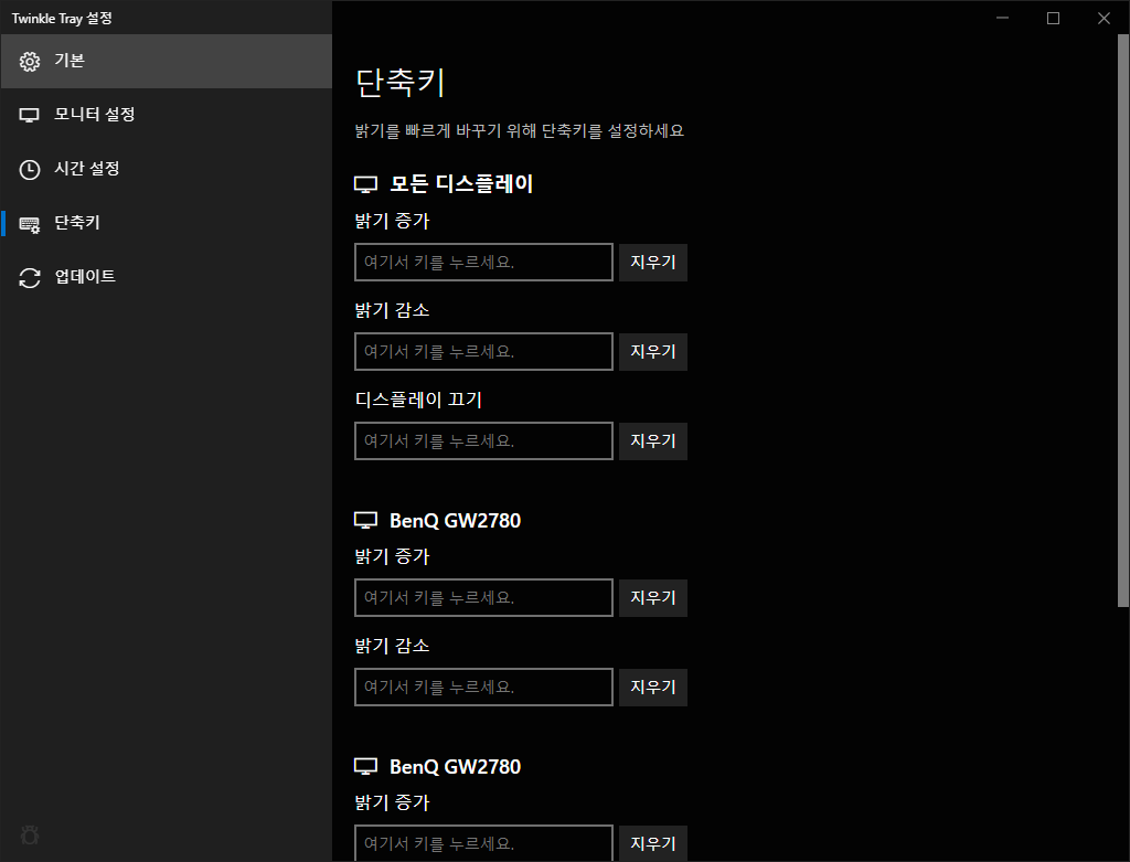 - 밝기 조정 정도(단축키를 눌렀을 때 밝기를 얼마나 바꿀 것인지 설정할 수 있습니다.)
