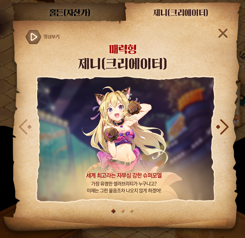 예상컨데, 가장 인기 있는 캐릭터가 되지 않을까 생각된다. 귀여운 외모에 고양이 캐릭터로 이미 인기가 많을 수밖에 없는 요소를 갖춘 캐릭터다. 또한, 가장 트렌디한 캐릭터로 이 게임을 처음 하거나 신선한 플레이를 원하는 사람들에게 딱 맞는 캐릭터가 아닐까 생각된다. 하지만, 능력치는 과연 어떨까?