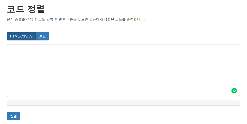 국내 개발자가 만든 웹 소스 코드 정렬 사이트이며, 이외의 다양한 웹도구, 개발도구, 확장앱 등을 제공한다. 사용방법은 매우 간단하며, 정리하고 싶은 코드를 붙여넣고 변환 버튼을 누르면 깔끔하게 정렬된 소스코드를 얻을 수 있다.