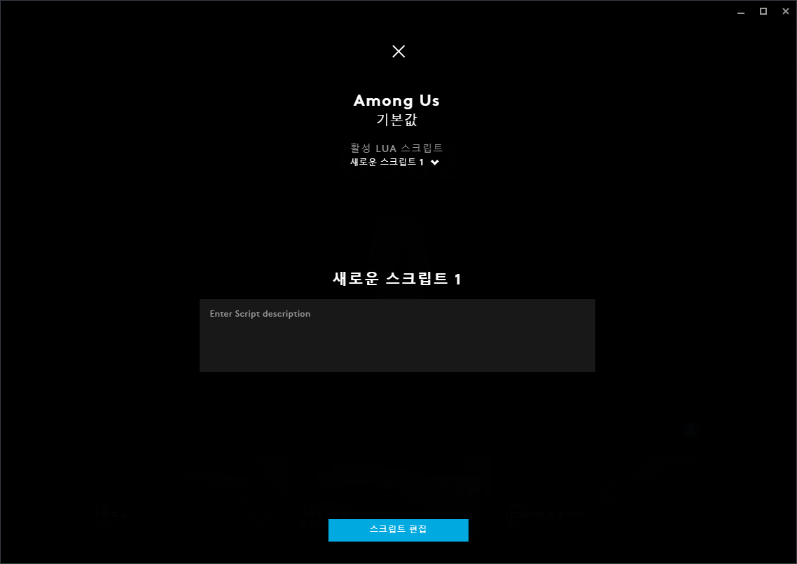 왼쪽 하단의 기본값(프로필)에서 세부 정보 옆의 아이콘을 클릭하면 스크립트 기능을 활용할 수 있습니다. 이 기능을 통해서 루아 스크립트를 통해 마우스 좌표나 여러 기능을 활용할 수 있습니다. 이 스크립트 기능은 같은 로지텍 소프트웨어 프로그램인 게임 소프트웨어와 동일한 기능입니다.
