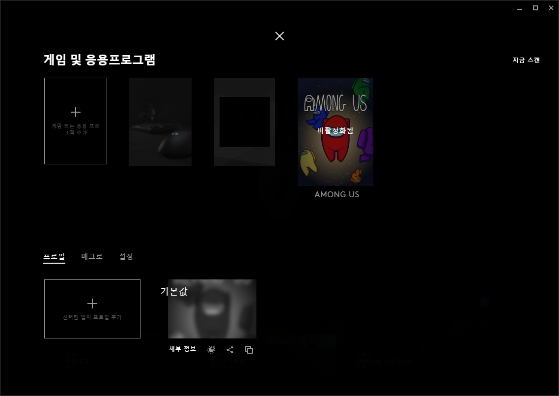 로지쿨 G HUB와 마찬가지로 스크립트도 가능하며, 스크립트 기능을 활용하는 방법은 새로운 프로필을 추가하고 프로필 아이콘을 오른쪽 버튼으로 누르면 스크립트를 설정할 수 있습니다.