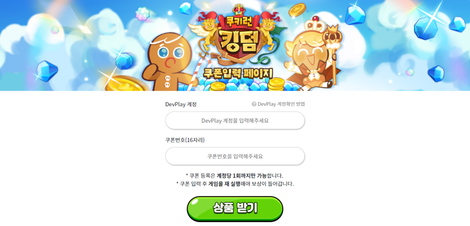 게임에서 로그인을 하지 않아도 입력할 수 있습니다. 쿠키런 킹덤 쿠폰입력 페이지에서 등록이 가능합니다. 계정이 없다면 먼저 계정을 만들고 계정 정보를 작성하고 쿠폰을 입력하면 됩니다.