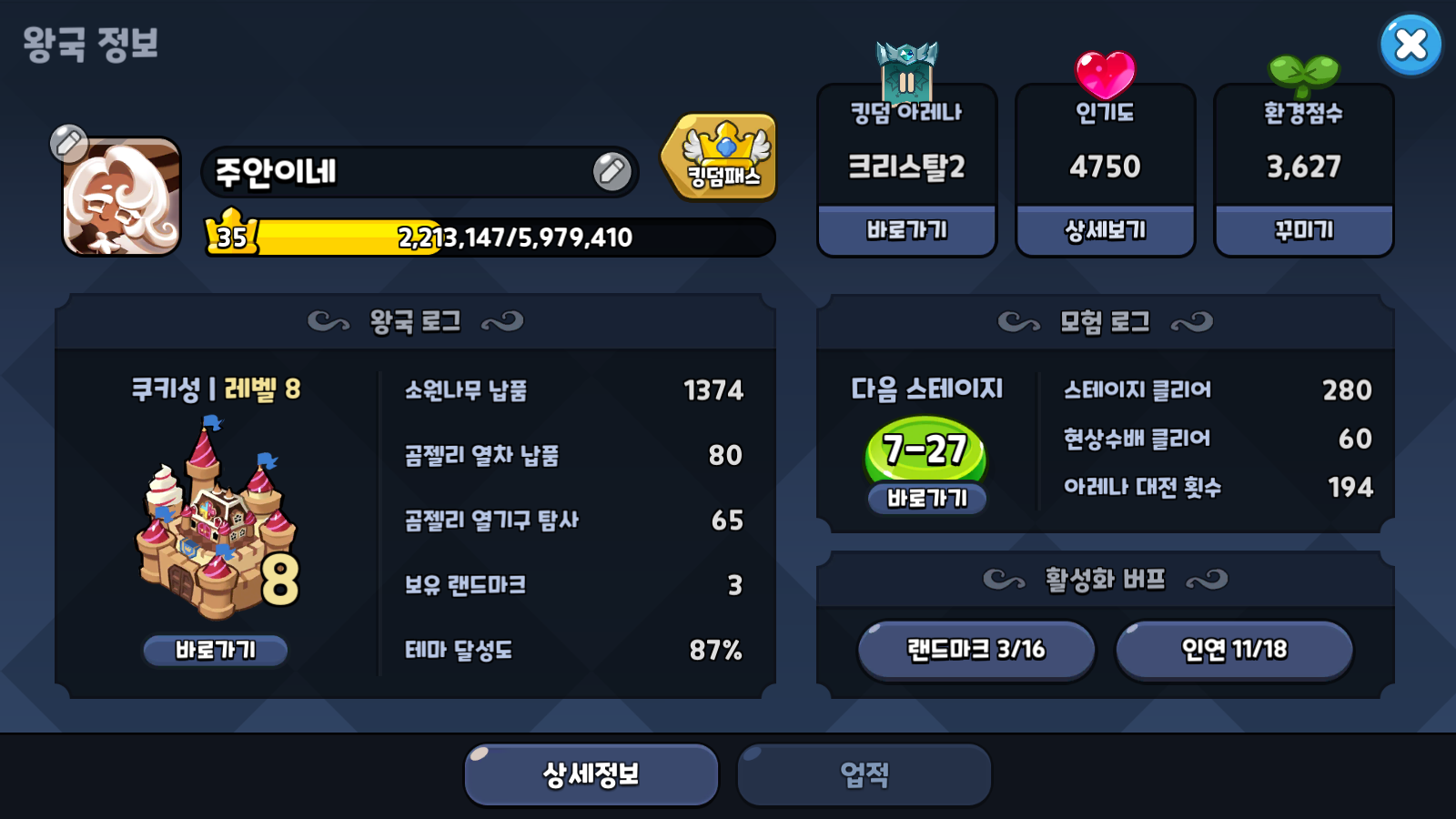 - 쿠키성 8레벨(9레벨 업그레이드중)